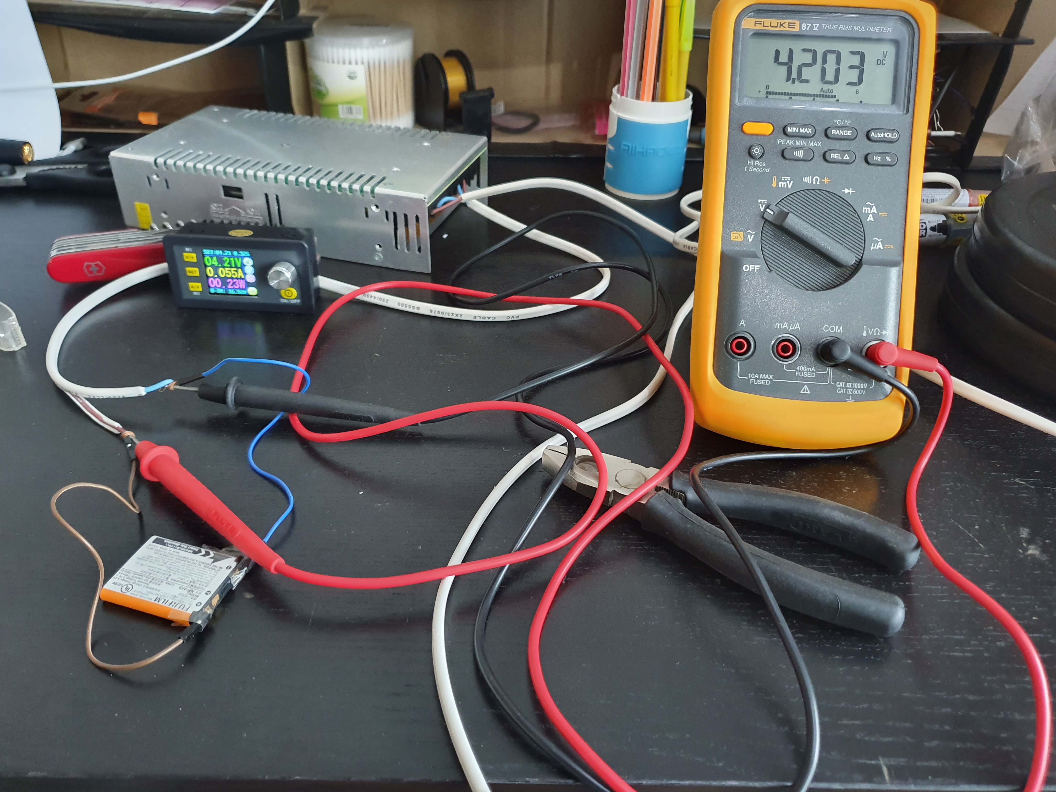 Let's stick with 325 mA until we know how it charges, then we can try upping it to fast charge if it looks right. Now, we need a constant current and constant voltage supply. The latter is pretty simple - I've had a small PC power supply from Aliexpress sitting on my desk that serves that purpose. Thank god for economies of scale - a low ripple, high wattage DC rail can be had for cheap in a PC power supply - even a second hand one'll do the job perfectly well. Anything barely good enough for a CPU is way overkill for me.